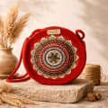 Handmade Jute Embroidered Round Sling Bag - Ruby Red